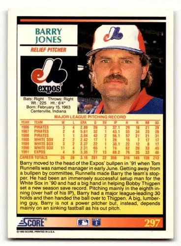 1992 Score #297 Barry Jones Montreal Expos Baseball Cards EX/NM ID:60480