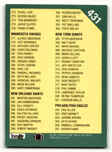 1991 Fleer #431 Checklist 218-327 CL Football Cards NM Near Mint ID:60516