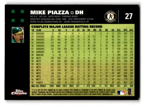 2007 Topps Chrome #27 Mike Piazza NM-MT Athletics ID:58435