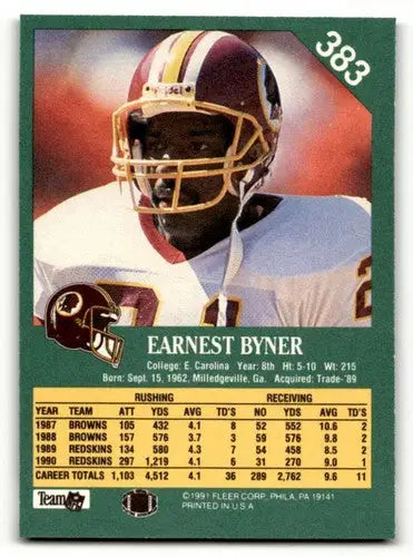 1991 Fleer #383 Earnest Byner Washington Redskins Football Cards NM ID:60508