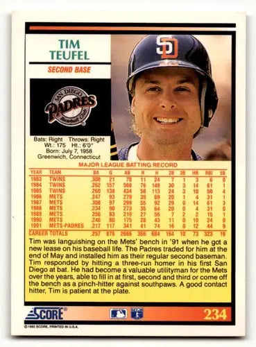 1992 Score #234 Tim Teufel San Diego Padres Baseball Cards EX/NM ID:60476