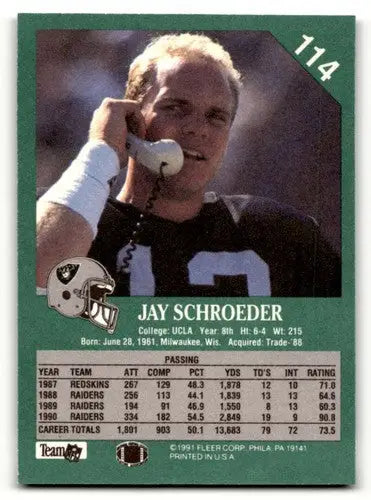 1991 Fleer #114 Jay Schroeder Los Angeles Raiders Football Cards NM ID:60524