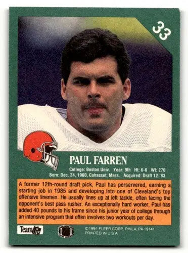 1991 Fleer #33 Paul Farren Cleveland Browns Football Cards NM Near M ID:60486