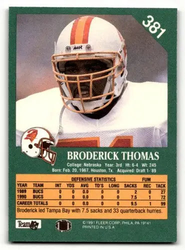 1991 Fleer #381 Broderick Thomas Tampa Bay Buccaneers Football Cards ID:60507