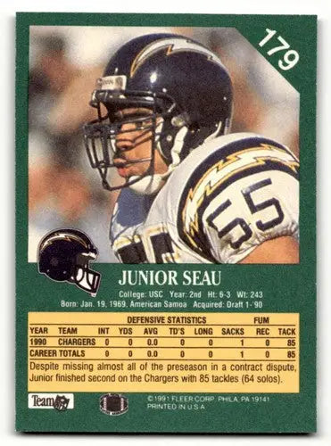 1991 Fleer #179 Junior Seau San Diego Chargers Football Cards NM Nea ID:60518