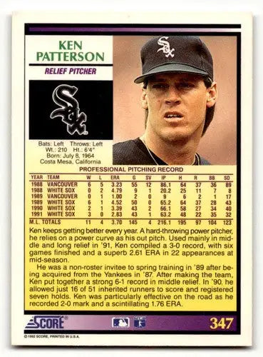 1992 Score #347 Ken Patterson Chicago White Sox Baseball Cards EX/NM ID:60449