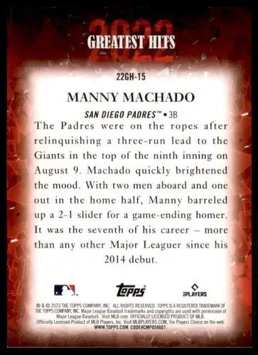 2023 Topps 2022 Greatest Hits #22GH-15 Manny Machado NM-MT Padres ID:57966