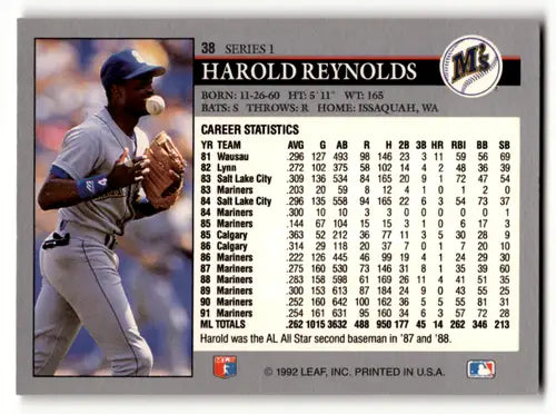 1992 Leaf #38 Harold Reynolds NM Near Mint Mariners ID:60438