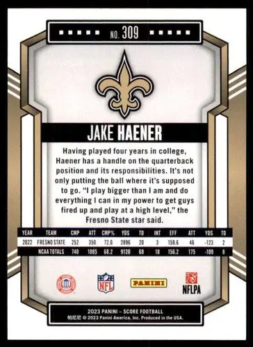 2023 Score #309 Jake Haener NM Near Mint RC Rookie Saints ID:64981