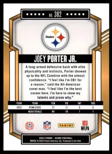 2023 Score #382 Joey Porter Jr. NM Near Mint RC Rookie Steelers ID:64991