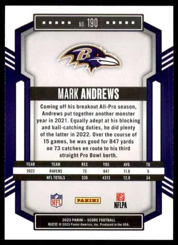 2023 Score #190 Mark Andrews NM Near Mint Ravens ID:64971