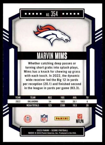 2023 Score #354 Marvin Mims NM Near Mint RC Rookie Broncos ID:64987