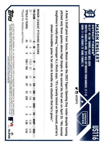 2023 Topps Update Series #US116 Mason Englert NM-MT RC Rookie Tigers ID:63885