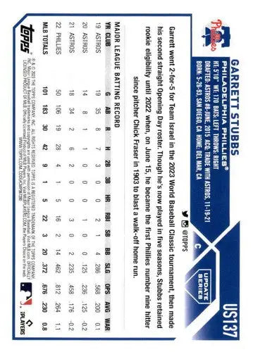 2023 Topps Update Series #US137 Garrett Stubbs NM-MT Phillies ID:63829