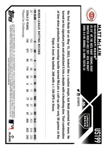 2023 Topps Update Series #US199 Matt McLain NM-MT RC Rookie Reds ID:63828
