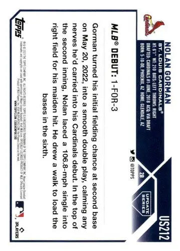 2023 Topps Update Series #US212 Nolan Gorman NM-MT Cardinals Rookie Deb ID:63877