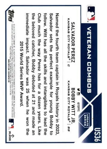 2023 Topps Update Series #US36 Salvador Perez/Bobby Witt Jr. NM-MT Roya ID:63857