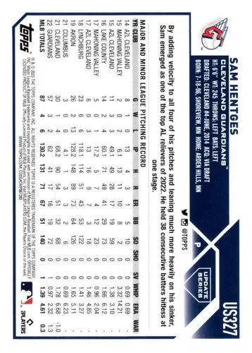2023 Topps Update Series #US327 Sam Hentges NM-MT Guardians ID:63862
