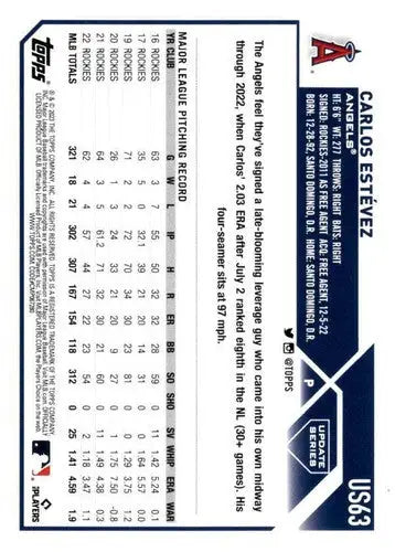 2023 Topps Update Series #US63 Carlos Estevez NM-MT Angels ID:63817