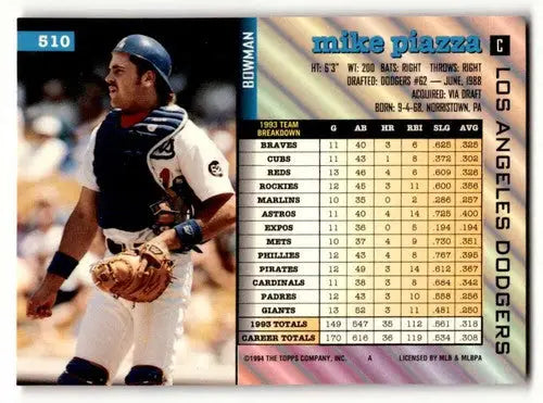 1994 Bowman #510 Mike Piazza Los Angeles Dodgers Baseball Cards NM N ID:62821