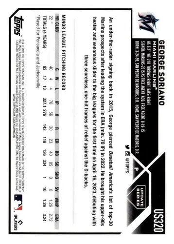 2023 Topps Update Series #US320 George Soriano NM-MT RC Rookie Marlins ID:63882