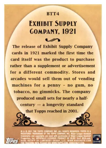 2011 Topps Before There Was Topps #BTT4 Exhibit Supply Company 1921 NM ID:65029