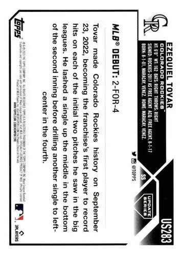 2023 Topps Update Series #US283 Ezequiel Tovar NM-MT Rockies Rookie Deb ID:67685
