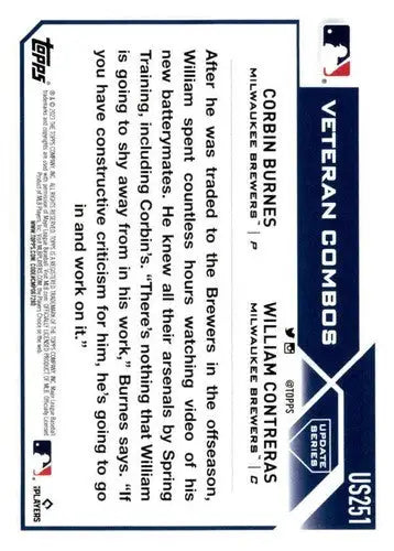 2023 Topps Update Series #US251 William Contreras/Corbin Burnes NM-MT B ID:67677