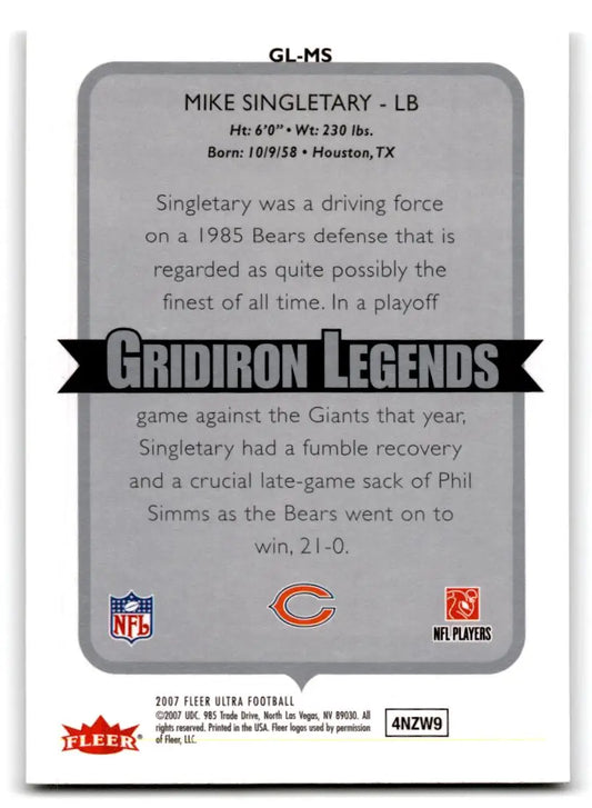 2007 Ultra #GL-MS Mike Singletary Gridiron Legends