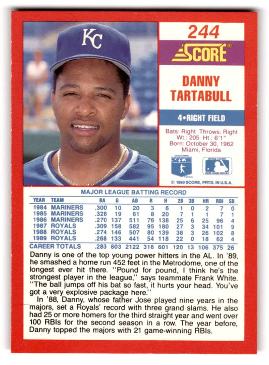 1990 Score #244 Danny Tartabull NM-MT Royals ID:70078