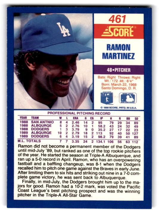 1990 Score #461 Ramon Martinez NM-MT Dodgers ID:70079
