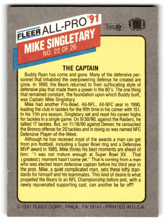1991 Fleer #22 Mike Singletary All-Pro '91