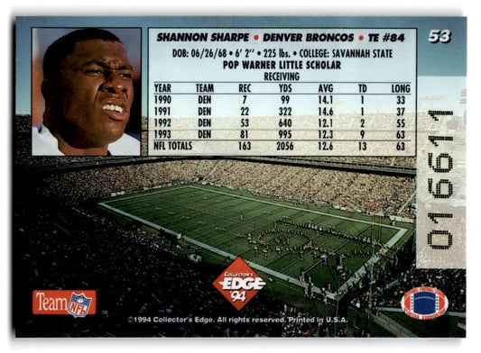 1994 Collector's Edge #53 Shannon Sharpe Pop Warner 22K Gold