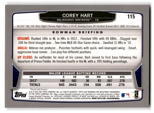 2013 Bowman #115 Corey Hart NM-MT Brewers ID:70753