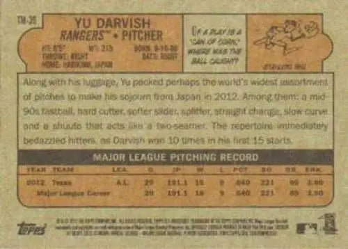 2013 Topps 1972 Topps Minis #TM-39 Yu Darvish NM-MT Rangers ID:70839