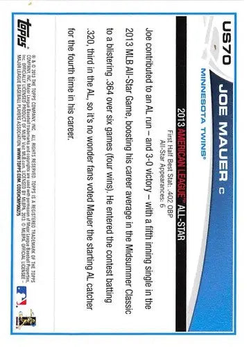 2013 Topps Update #US70 Joe Mauer NM-MT Twins ID:71334