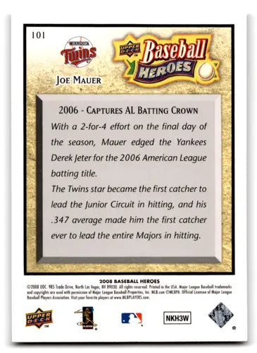 2008 Upper Deck Baseball Heroes #101 Joe Mauer NM-MT Twins ID:71337