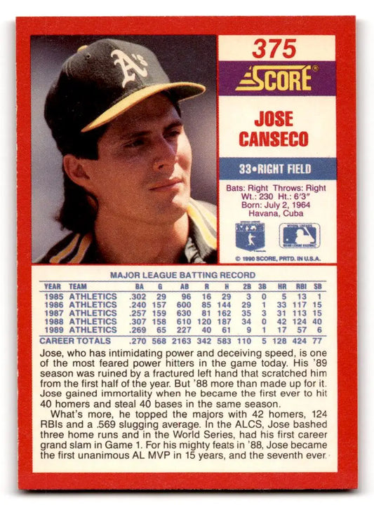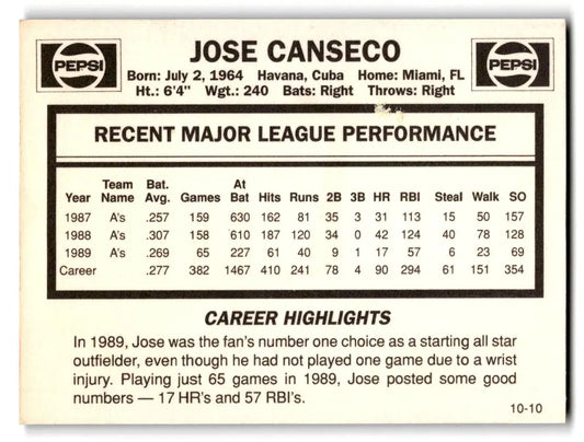1990 Pepsi Jose Canseco #10 Jose Canseco