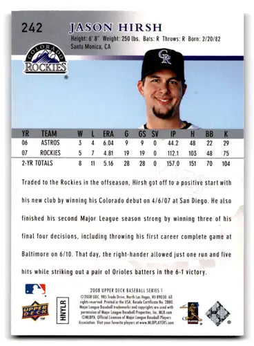 2008 Upper Deck #242 Jason Hirsh NM Near Mint Rockies ID:72083