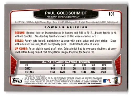 2013 Bowman #101 Paul Goldschmidt NM-MT Diamondbacks ID:72050