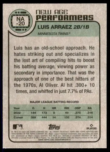 2023 Topps Heritage New Age Performers #NA-20 Luis Arraez NM-MT Twins ID:73355