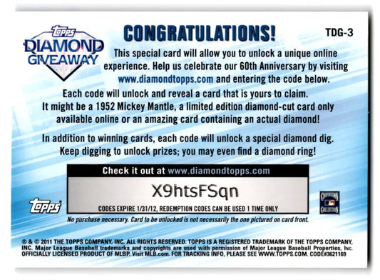 2011 Topps Diamond Giveaway #TDG-3 Reggie Jackson NM-MT Yankees ID:72206