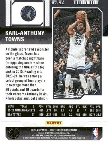 2023-24 Panini Contenders Season Ticket Retail #42 Karl-Anthony Towns N ID:74212