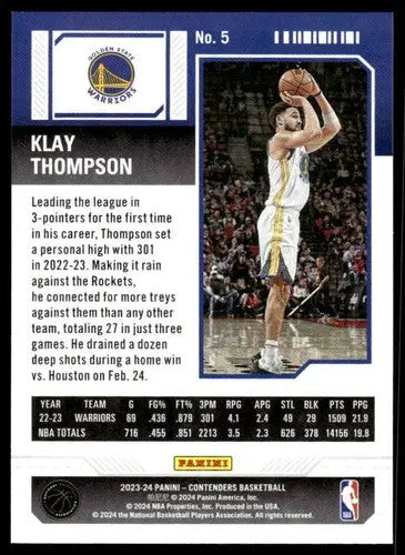 2023-24 Panini Contenders Season Ticket Retail #5 Klay Thompson NM-MT W ID:74186