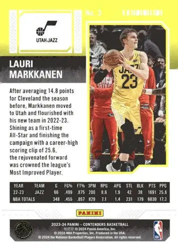 2023-24 Panini Contenders Season Ticket Retail #3 Lauri Markkanen NM-MT ID:74184