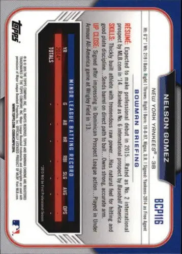 2015 Bowman Chrome Prospects #BCP116 Nelson Gomez NM-MT Yankees