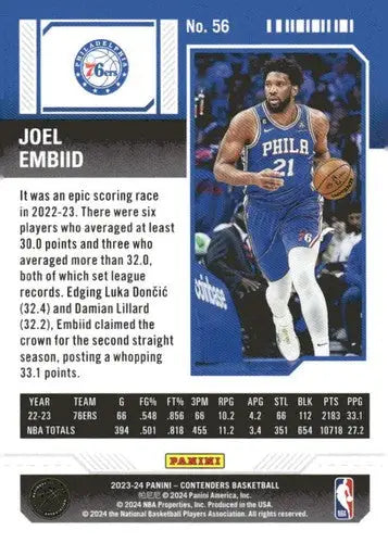 2023-24 Panini Contenders Season Ticket Retail #56 Joel Embiid NM-MT 76 ID:74220