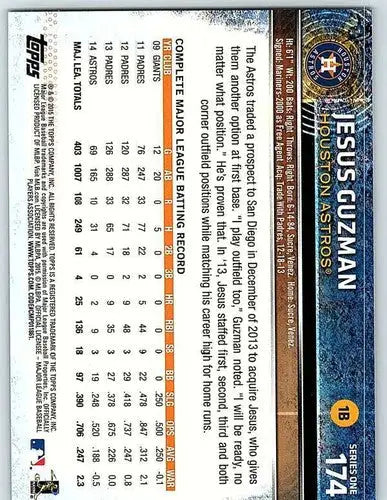 2015 Topps #174 Jesus Guzman NM-MT Astros ID:12173