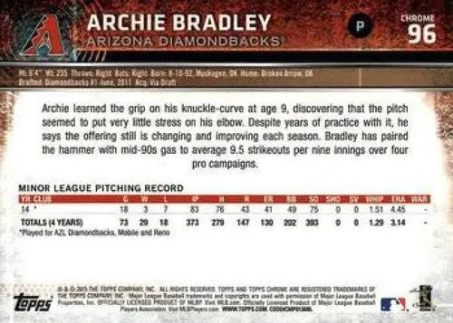2015 Topps Chrome #96 Archie Bradley NM-MT RC Rookie Diamondbacks ID:4279