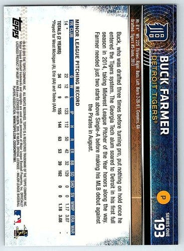 2015 Topps #193 Buck Farmer NM-MT RC Rookie Tigers ID:5467